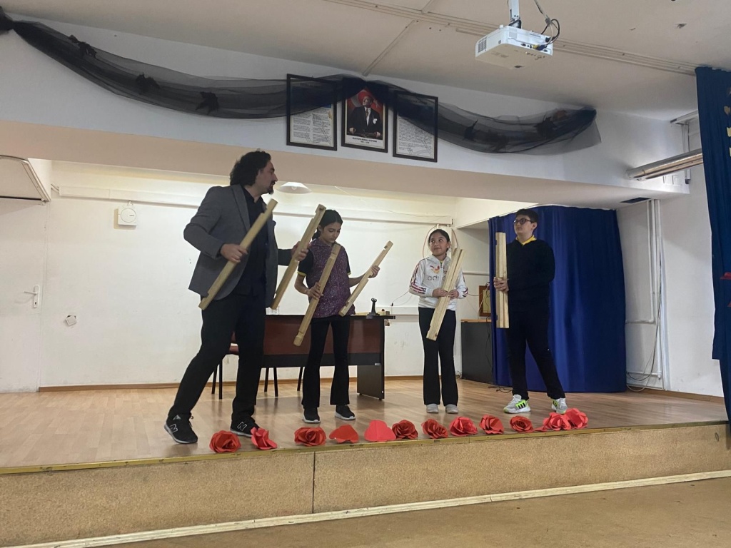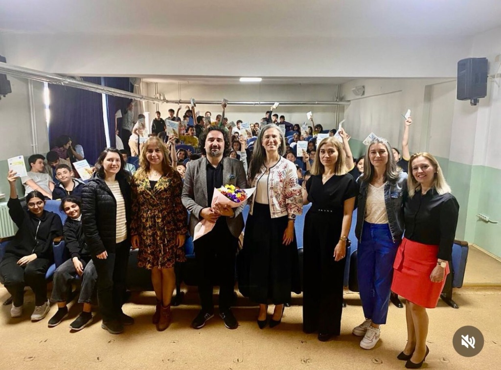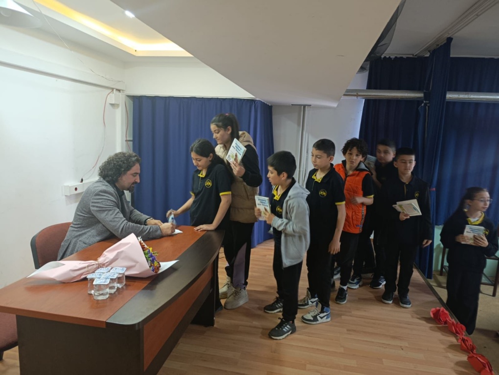 Geliştir Uygula Paylaş(GUP) projesi kapsamında yürüttüğümüz “Matematik Kütüphanesi Uygulaması ile Öğrencilerin Matematiğe Yönelik Tutumlarının İncelenmesi “ projemizin uygulamalarından birinde çocuklarımız okudukları Şifrelerin Peşinde Mavi Yolculuk kitabının yazarı Hasan Topdemir ile bir araya geldiler.Bu keyifli etkinlik için yazarımıza teşekkür ederiz.